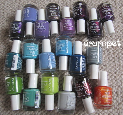 my beloved Bettinas which I had been keeping separately anyway because they are so pretty to look at and the bottles are so shiny and I purr when I stroke them. Oooops, too far? OK, close ups then -