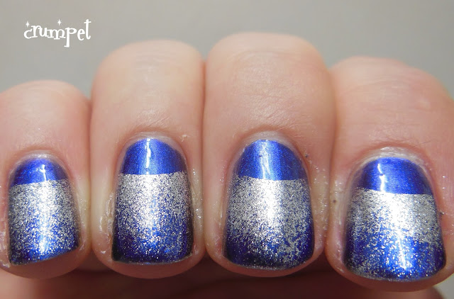 I wanted to do something a little different, but wasn't confident enough to do some of the amazing stamping half moons I've seen, so I did myself a gentle glitter gradient.