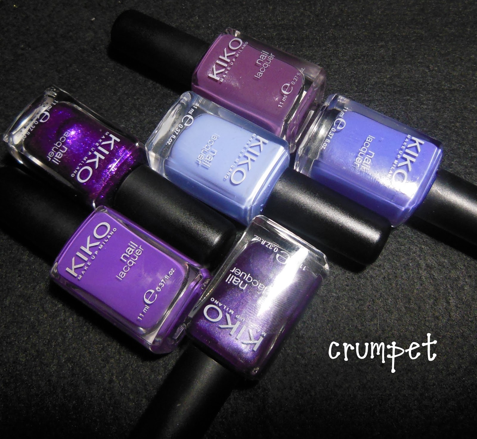 As I'd used so many of my favourite colours in November, I decided to do an exclusively KIKO splodgerama.    KIKO ROCK at blues and purples so it was an easy choice.  Unfortunately, KIKO don't really name their polishes, so here are those sexy numbers -