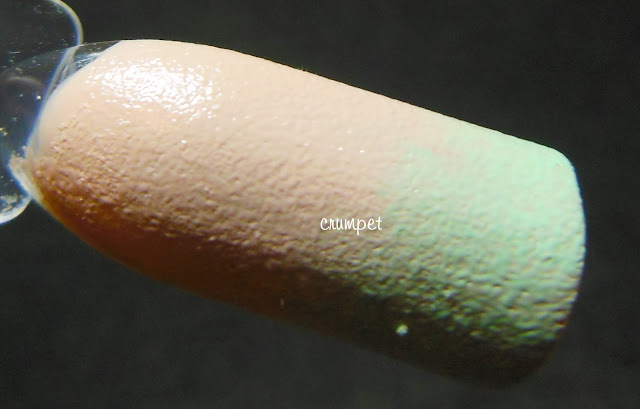 Now, because the Beige was less opaque than the Honeydew, I had to revert to cheating here. To get the opacity of the Beige that I needed, I ended up painting it directly onto the nail, bouncing, painting, and bouncing, until I had the desired opacity. Often when I am doing a gradient, I will paint and bounce the tip, to make sure I have the highest colour saturation possible.