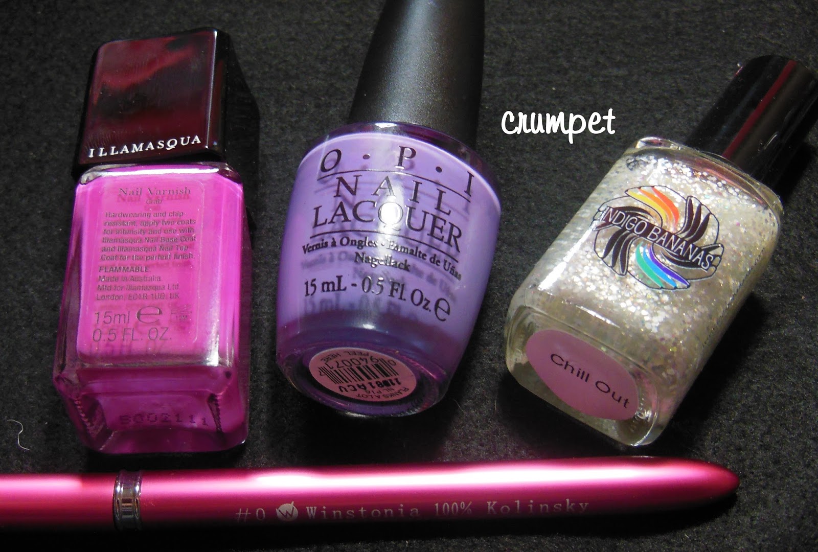 I've briefly shown painted gradients before. Stupidly, I didn't take many photos here, but basically, the base polish now has Illamasqua Grab painted over it.